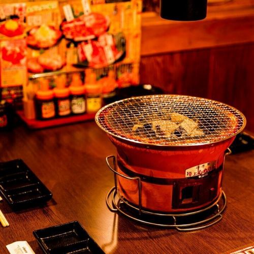 【約會、女生聚會的最佳選擇】座位空間寬敞,可安心用餐,無需擔心鄰座客人。用煙管就可以防止煙霧!讓我們聚集在炭火烤架旁,享受快樂的時光。這裡也提供無限供應的餐飲服務,選擇豐富多樣,訂購方便。 (圖:加盟店)